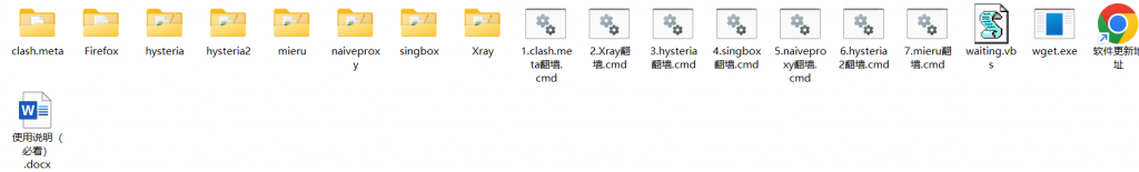 介绍集成7种代理工具,包括clash.meta、Xray、hysteria、singbox、naiveproxy、hysteria2、mieru。
